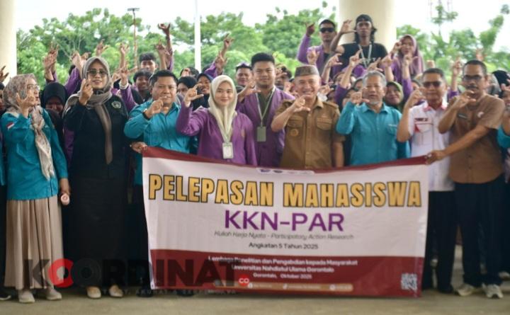 Koordinat.co, POHUWATO – Sebanyak 181 mahasiswa Universitas Nahdlatul Ulama Gorontalo (UNUGO) yang akan melaksanakan Kuliah Kerja Nyata (KKN) di Kabupaten Pohuwato diterima langsung oleh Bupati Pohuwato, Saipul A. Mbuinga, di halaman Kantor Bupati, Senin (27/10/2025).