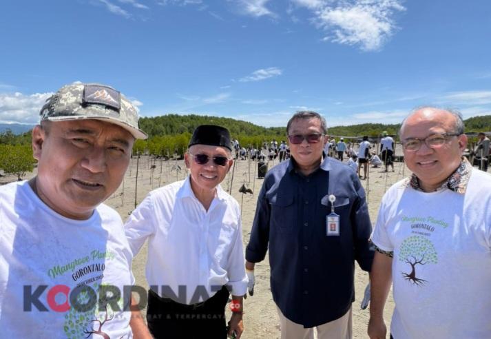 Koordinat.co, POHUWATO – Wakil Bupati Pohuwato, Iwan S Adam menghadiri kegiatan penanaman perdana Mangrove PT Sumitomo Group bekerja sama dengan PT Panasonic Gobel.