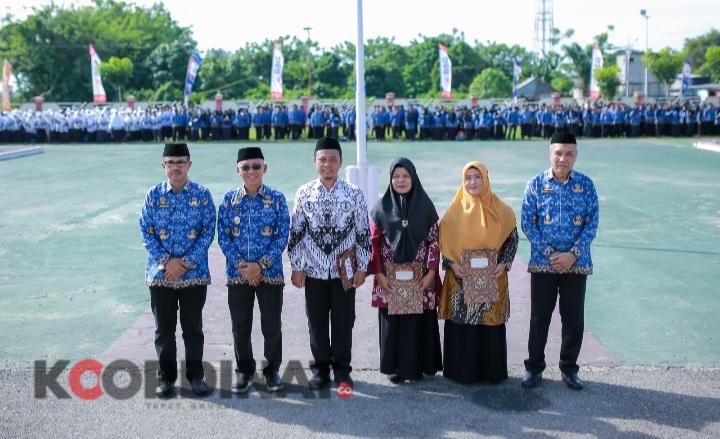 Koordinat.co, POHUWATO – Pada momen peringatan Hari Ulang Tahun (HUT) Korps Pegawai Republik Indonesia (Korpri) ke-54 yang dirangkaikan dengan HUT Persatuan Guru Republik Indonesia (PGRI) ke-80 dan Hari Guru Nasional Tahun 2025, diisi dengan penyerahan sejumlah penghargaan, Kamis, (27/11/2025), di halaman Kantor Bupati Pohuwato.