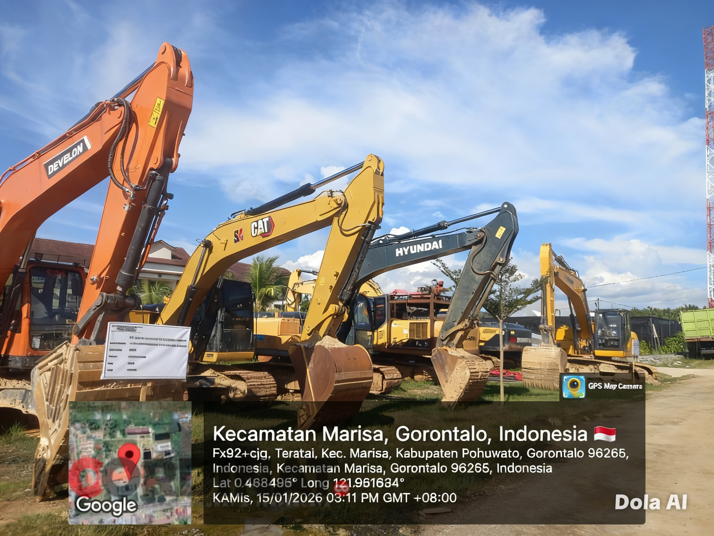 – LiuGong kuning dan XCMG kuning diduga milik PI (disewa MI) di Desa Popaya, Kecamatan Dengilo (kawasan HPK)