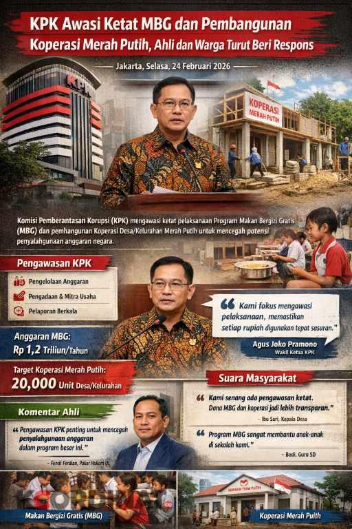 Jakarta, Selasa, 24 Februari 2026 — Komisi Pemberantasan Korupsi (KPK) menegaskan pengawasan penuh terhadap dua program strategis pemerintah: Makan Bergizi Gratis (MBG) dan Koperasi Desa/Kelurahan Merah Putih (KDKMP).